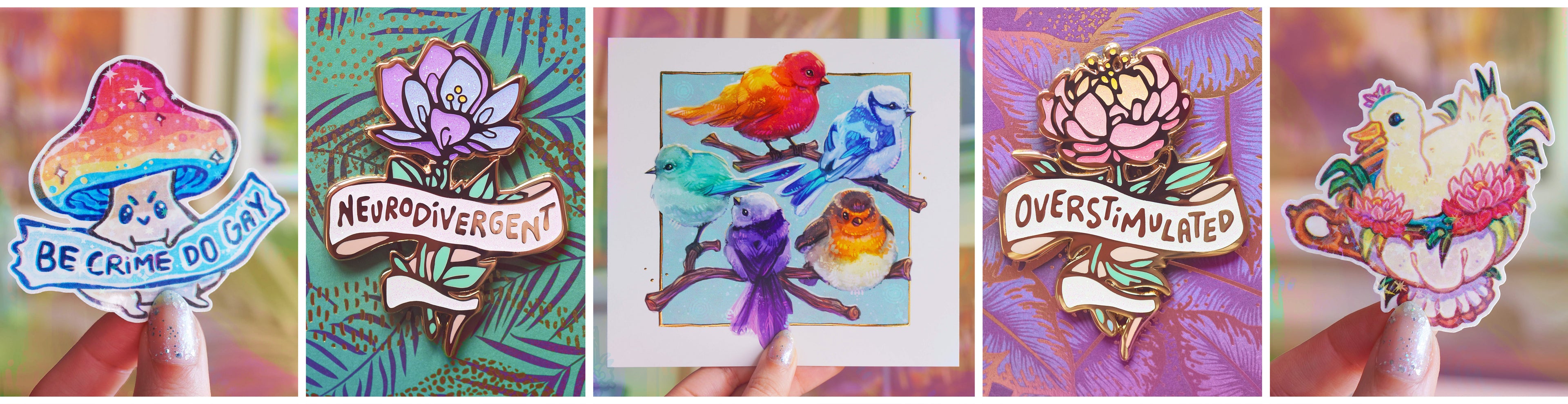 ART PRINTS, ENAMEL PINS, STICKERS & MORE!