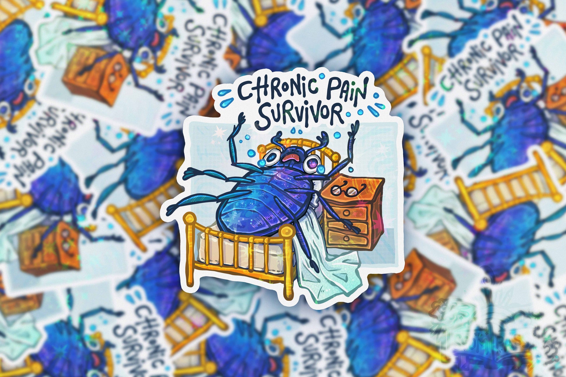 "Chronic Pain" handmade waterproof BIG GLITTER sticker.