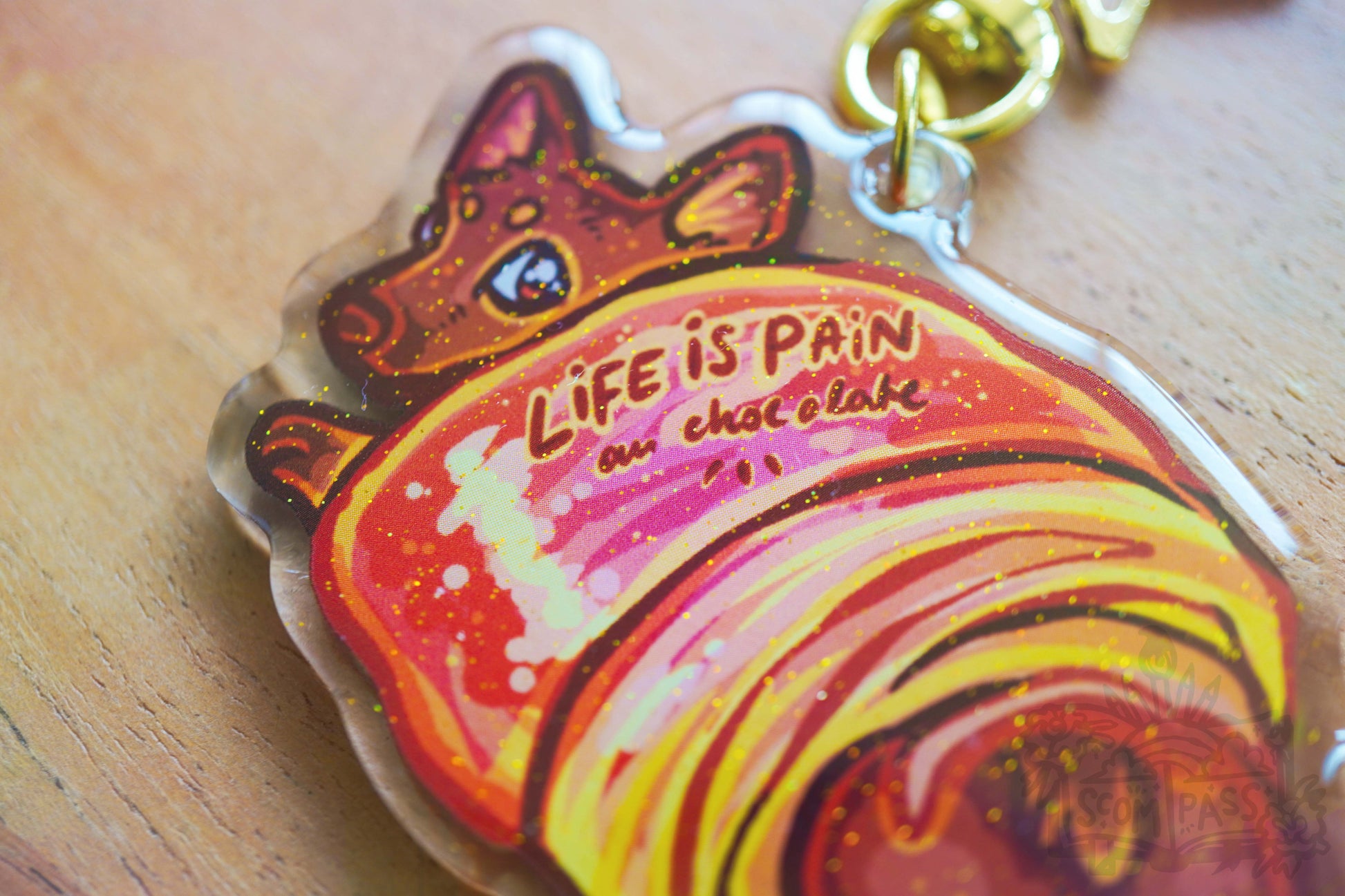 "Pain Au Chocolate" Acrylic Charm with a golden star hook clasp.